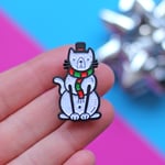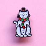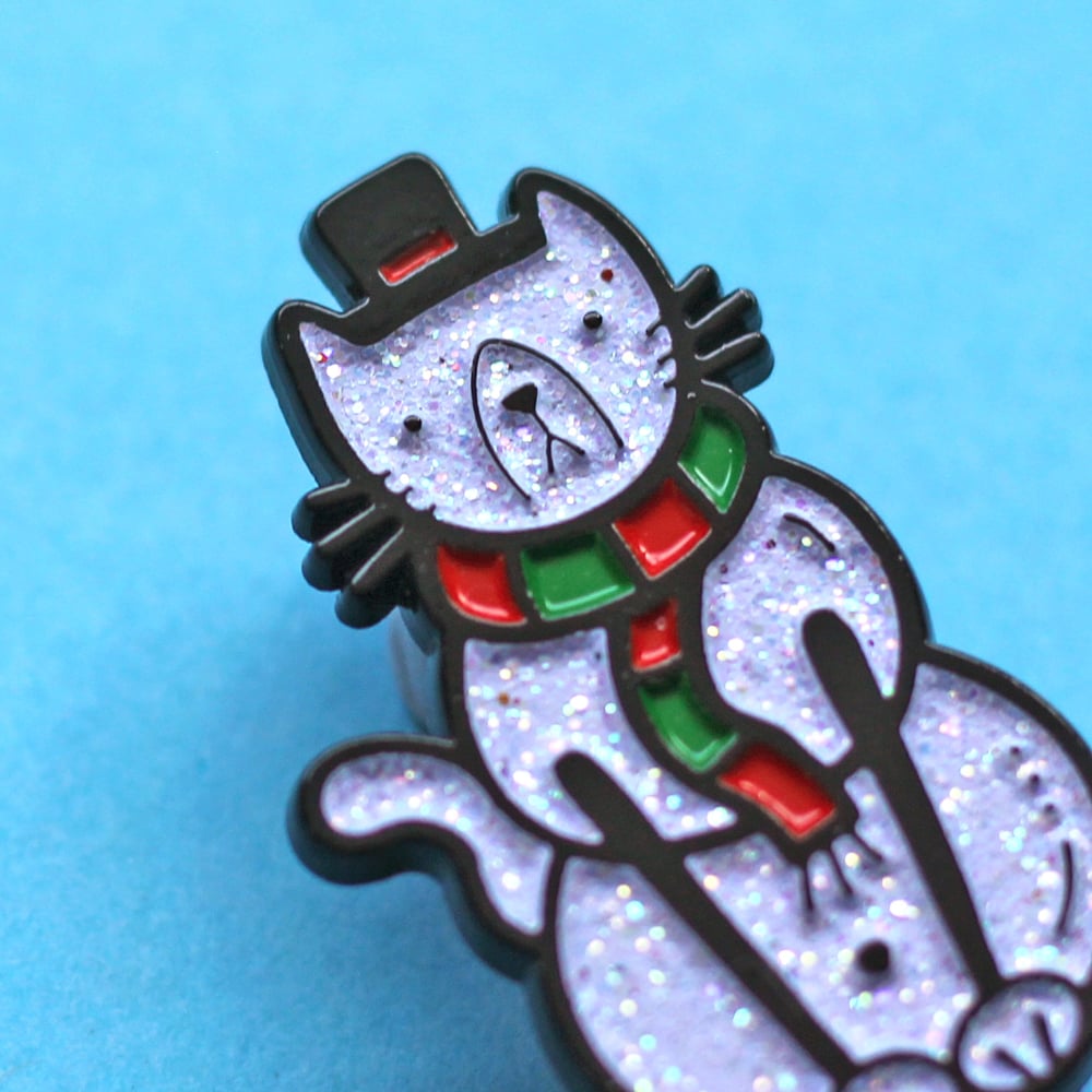 Christmas Snowcat enamel pin - snowman cat - iridescent glitter - lapel pin badge