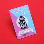 These festive pins feature a cute & silly snow-cat, & have iridescent glitter for extra sparkle!