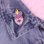 Floral flaming heart enamel pin - sacred crying heart - creepy cute - pastel goth - lapel pin badge