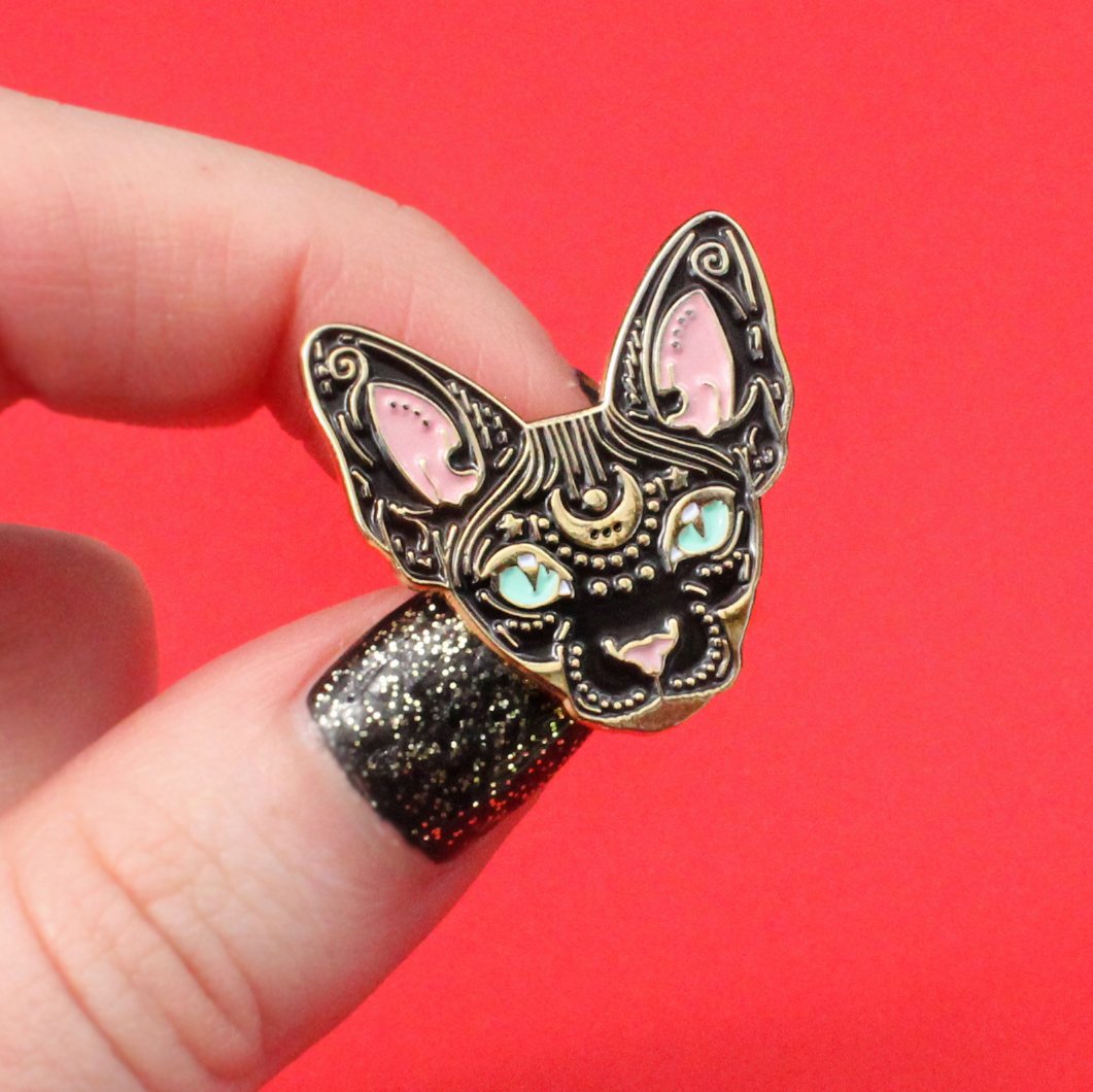 Mystical Sphynx Cat pin - BLACK