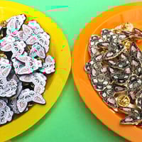Each pin has a metal clutch backing & is approx 32mm in size at longest point.
