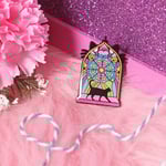 STAINED GLASS WINDOW WITH CAT ENAMEL PIN